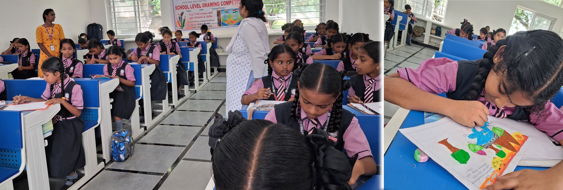 KG classrooms have attractive & colorful furniture with bathrooms and separate ayahs.